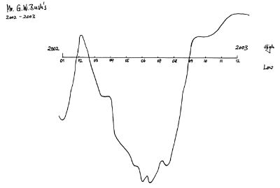 Indes kann man von politischen Größen Jahreskurven erstellen, die, etwa bei einem Präsidenten Hoch und tiefphasen erkennen lassen. Als Beispiel G.W.Busch von 2002-2003 mit einer sehr schlechten Phase im Juni 2002, die etwa ab September von einer Verbesserung abgelöst wird.