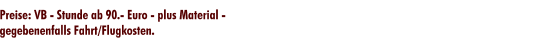 Preise sind Verhandlungssache, sind computergestützt, doch Handarbeit. Auch hier bieten wir Qualität statt Quantität. Die Endpreise richten sich wie bei jeder sorgfältigen Handarbeit nach dem erfolgten Zeitaufwand und Anwendungsgebiet, deshalb bitte Kostenvoranschlag einholen.